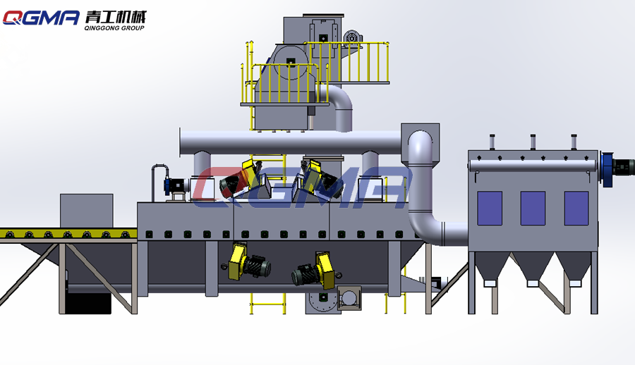 鋁膜板專用拋丸清理機可有效解決鋁合金模板施工后殘留在模板上的各類水泥雜質(zhì)等,替代傳統(tǒng)的化學(xué)清理、人工清理方式,清理效果好,無死角,清理速度快,效率高,處理后的模板可以直接使用,可有效降低模板企業(yè)的作業(yè)成本。